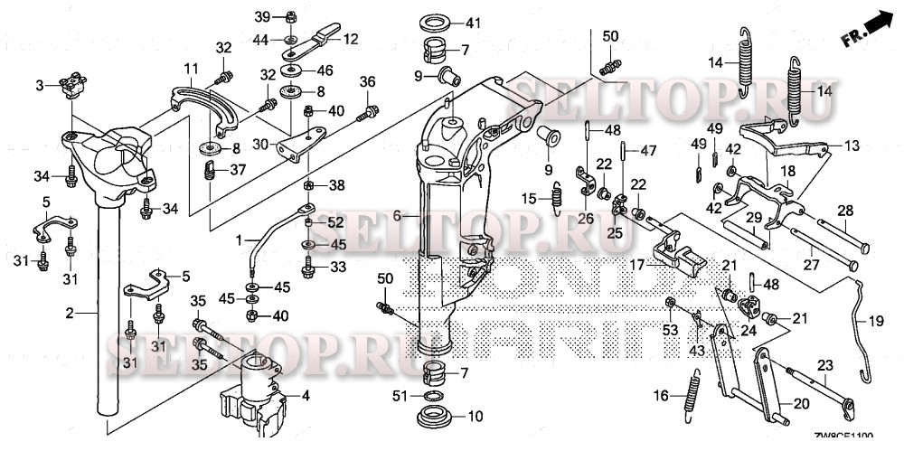 Корпус вертлюга (1) для Honda BFP9.9DK3 XHA, взрыв-схема: