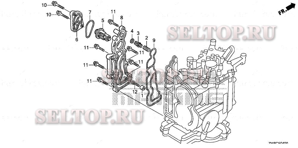 Термостат для Honda BFP9.9DK3 XHA, взрыв-схема: