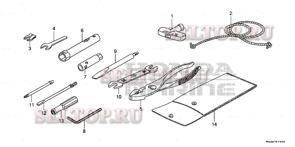 Инструмент для Honda BFP9.9DK3 XHTA, взрыв-схема: