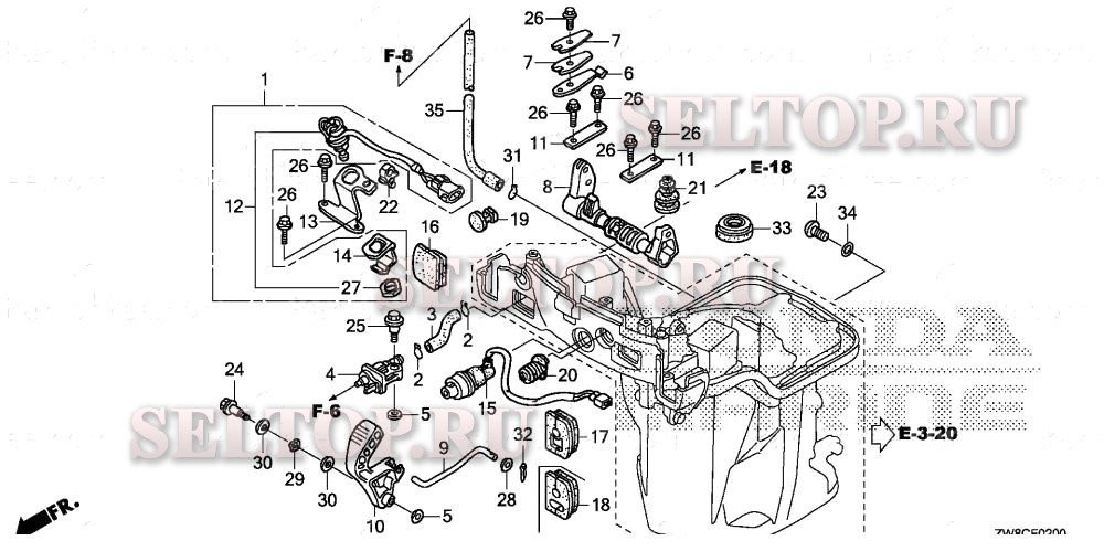 Ось вилки переключения (технические характеристики) для Honda BFP9.9DK3 XHTA, взрыв-схема: