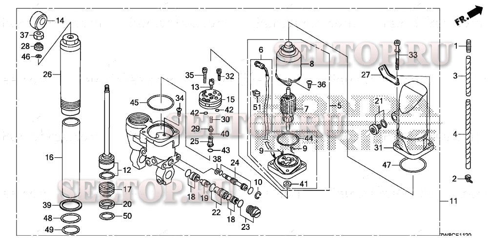 Power trim-tilt для Honda BFP9.9DK3 XHTA, взрыв-схема: