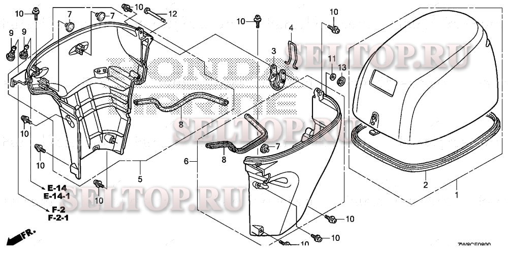 Крышка двигателя для Honda BFP9.9DK3 XRTA, взрыв-схема: