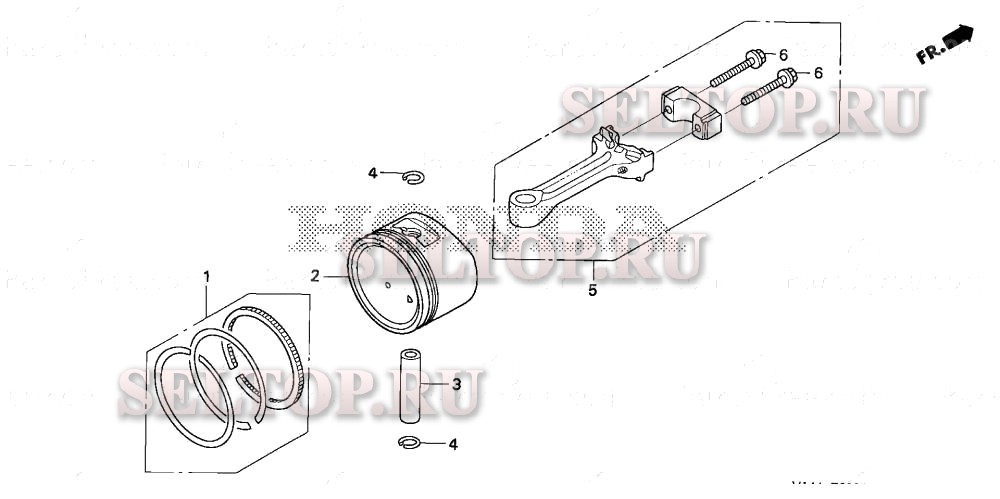 Поршень, шатун для Honda F220 A/B, взрыв-схема: