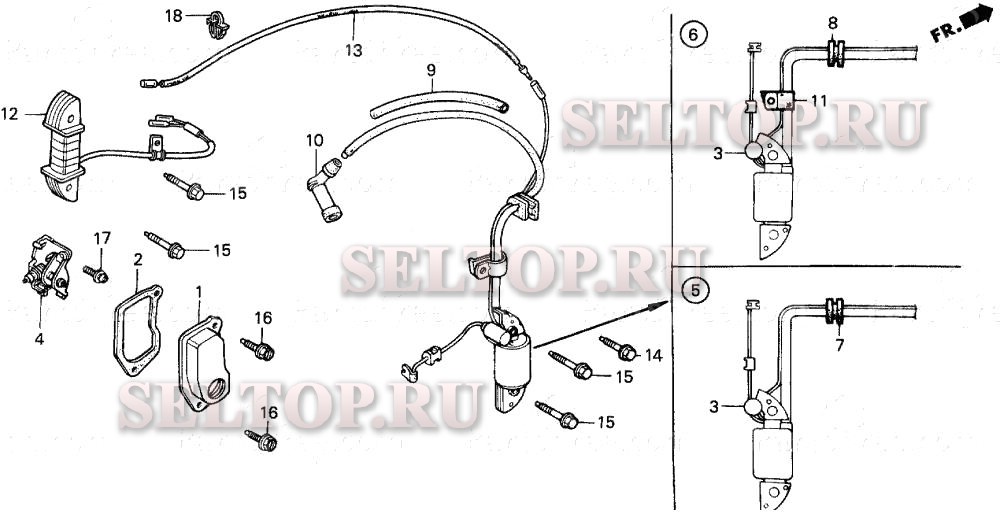 Катушка зажигания для Honda FR500K1 A, взрыв-схема: