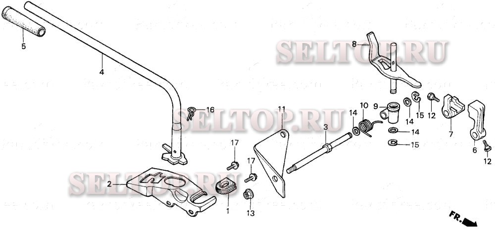 Рычаг переключения для Honda FR500K1 A, взрыв-схема: