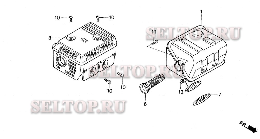 Глушитель для Honda WDP20X A, взрыв-схема: