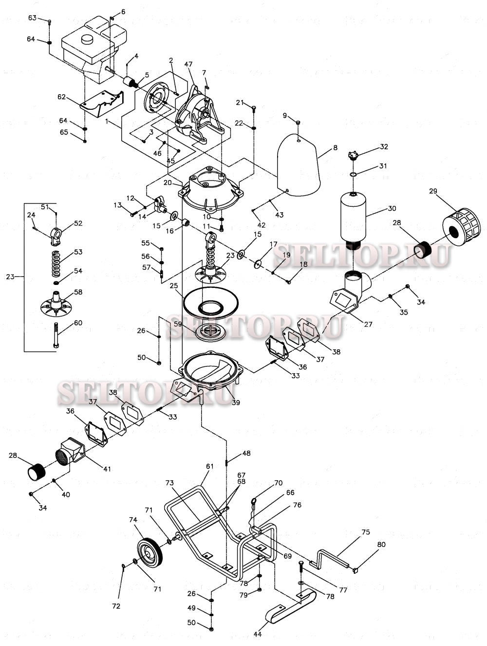 Корпус и компоненты (wdp30xk1) для Honda WDP30XK1 AT, взрыв-схема: