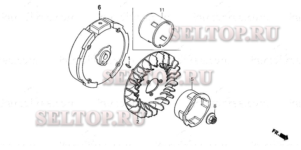 Маховик для Honda WDP30XK2 AT, взрыв-схема: