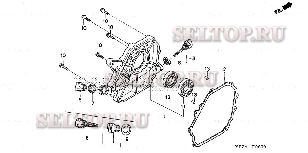 Крышка картера для Honda WH15XK2 AC1, взрыв-схема: