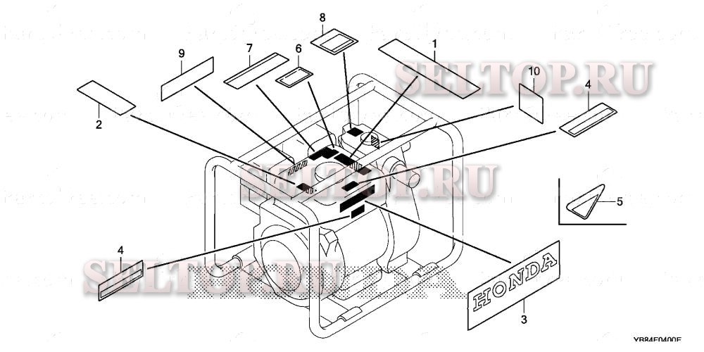 Этикетки (2) для Honda WT30XK1 CR, взрыв-схема: