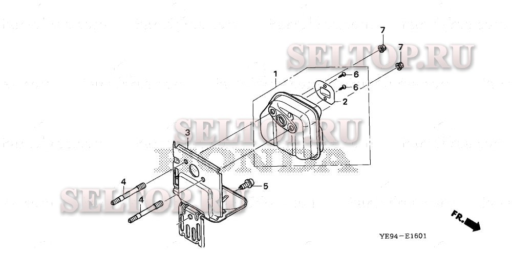Глушитель (wx10k1) для Honda WX10K1 AT, взрыв-схема:
