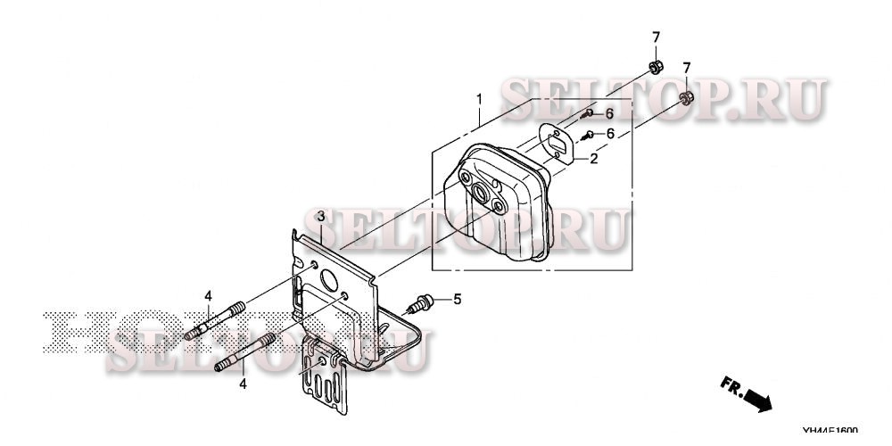 Глушитель (wx10t) для Honda WX10T A, взрыв-схема:
