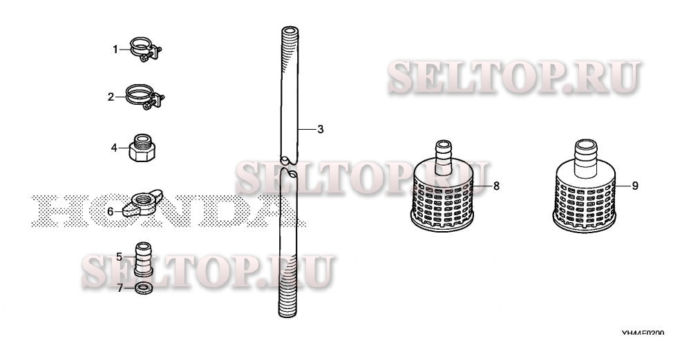 Натяжное устройство + hose для Honda WX10T A, взрыв-схема: