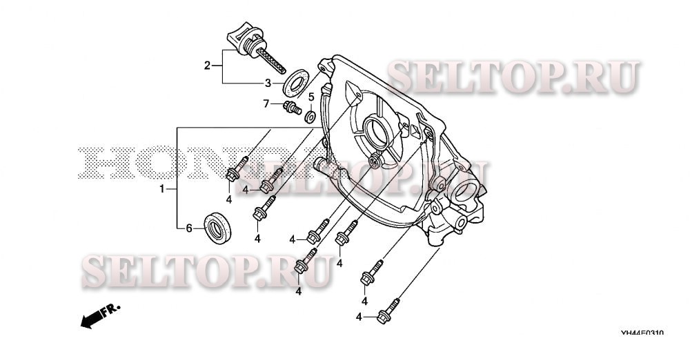 Корпус с датчиком уровня масла (wx15t) для Honda WX15T A, взрыв-схема: