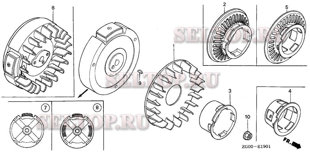 Маховик, вентилятор охлаждения (2) для Honda G100K2 QA, взрыв-схема: