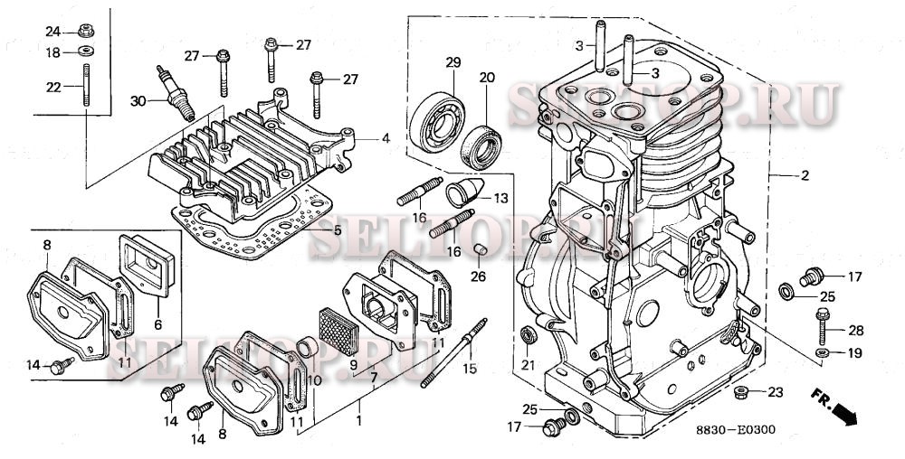 Цилиндр, головка цилиндра для Honda G200 SBV, взрыв-схема: