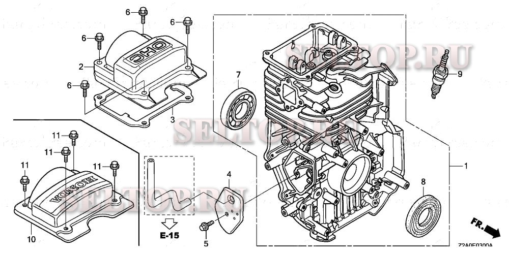 Блок цилиндров для Honda GS160LA QHAF, взрыв-схема: