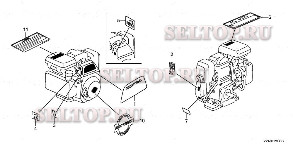 Этикетка для Honda GS160LA QHAF, взрыв-схема: