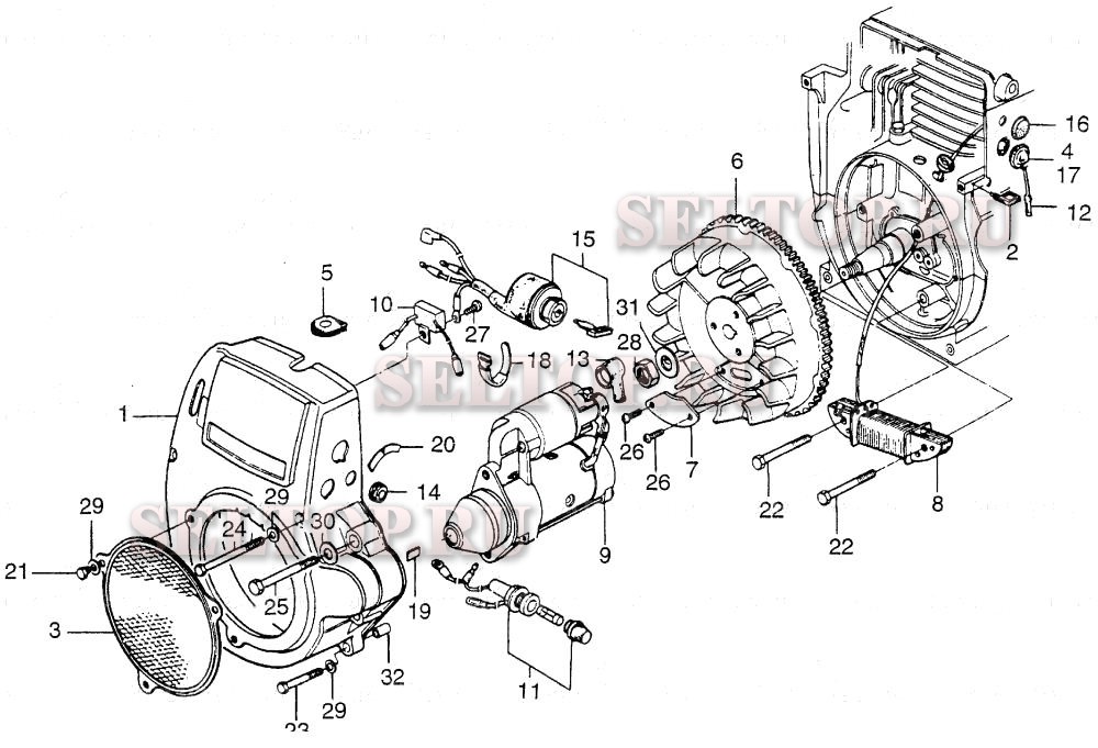 S65/k2 кожух вентилятора, маховик, стартер для Honda GS65K2 BD, взрыв-схема: