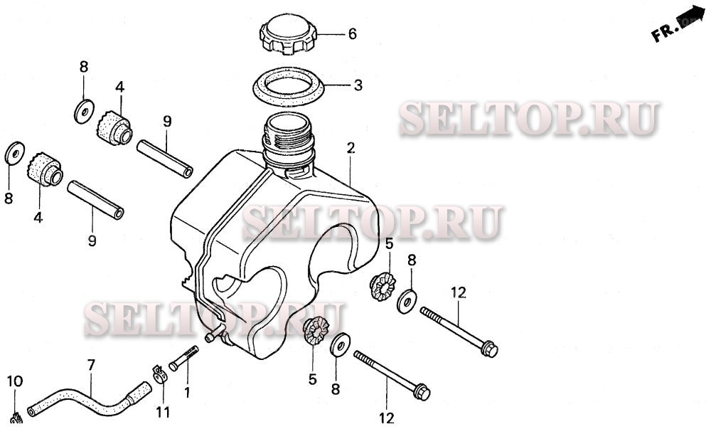 Топливный бак для Honda H1011RK1 SAC, взрыв-схема: