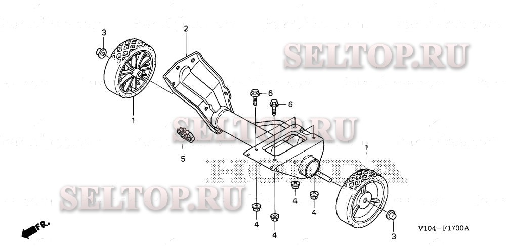 Рама двигателя, колеса для Honda HS520 ASA, взрыв-схема: