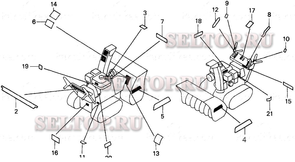 Этикетки для Honda HS624K1 TA/C, взрыв-схема: