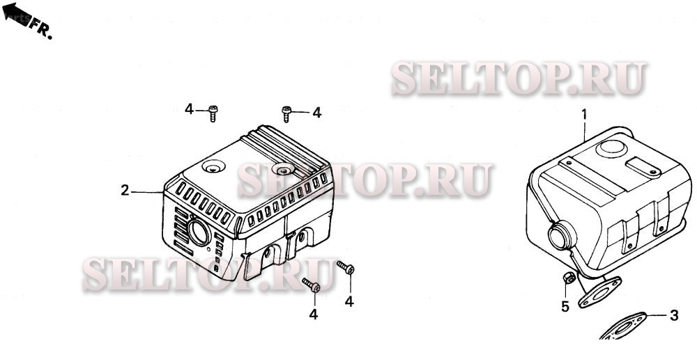 Глушитель для Honda HS624K1 TC/B, взрыв-схема: