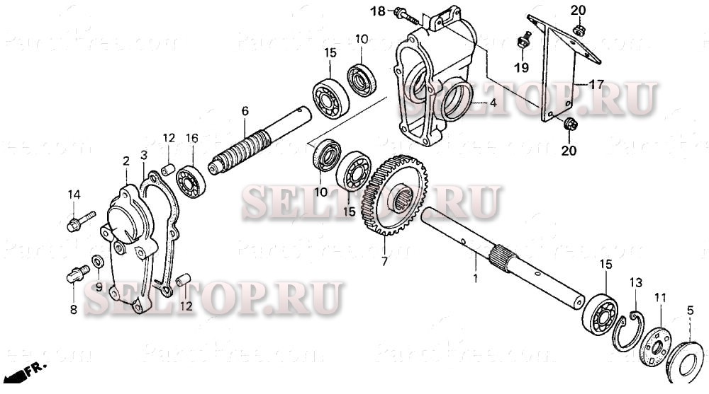 Редуктор шнека для Honda HS624K1 WA/B, взрыв-схема:
