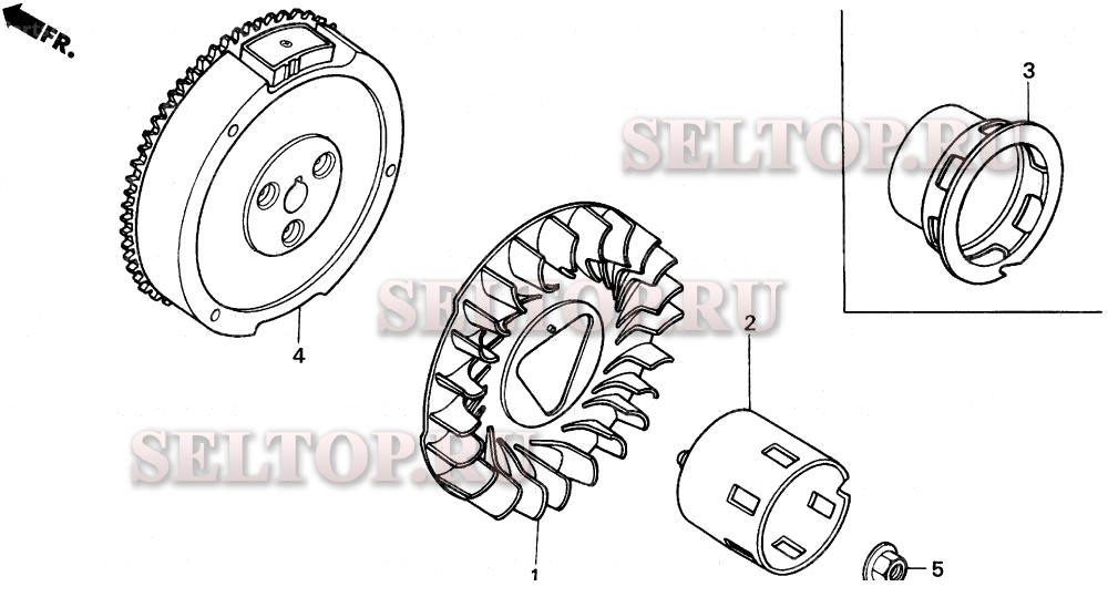 Маховик для Honda HS828 TAS, взрыв-схема: