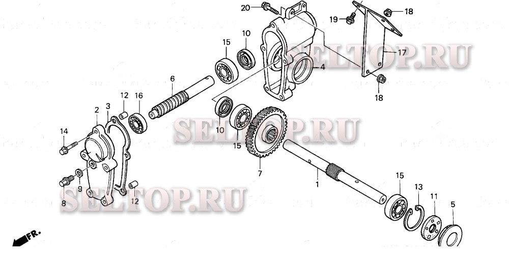 Редуктор шнека для Honda HS828K1 WA, взрыв-схема: