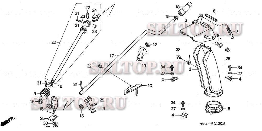 Желоб, ручка управления желобом для Honda HS828K1 WA/C, взрыв-схема: