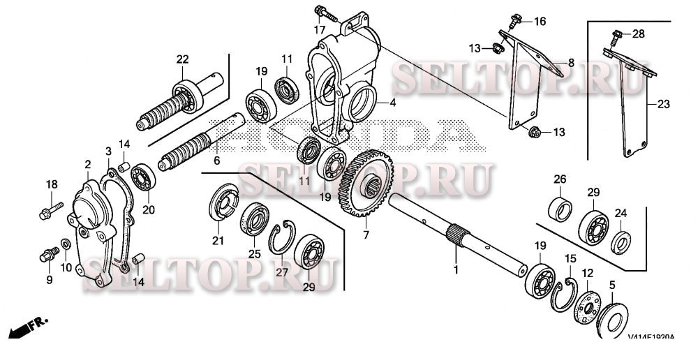 Редуктор шнека (1) для Honda HSS928A AW, взрыв-схема: